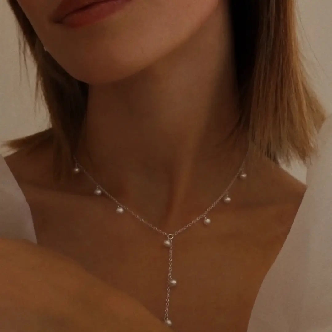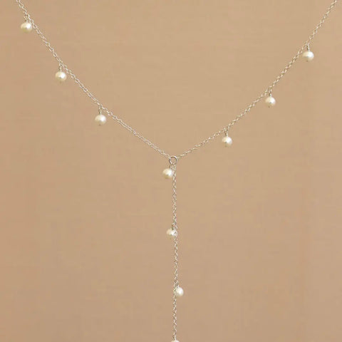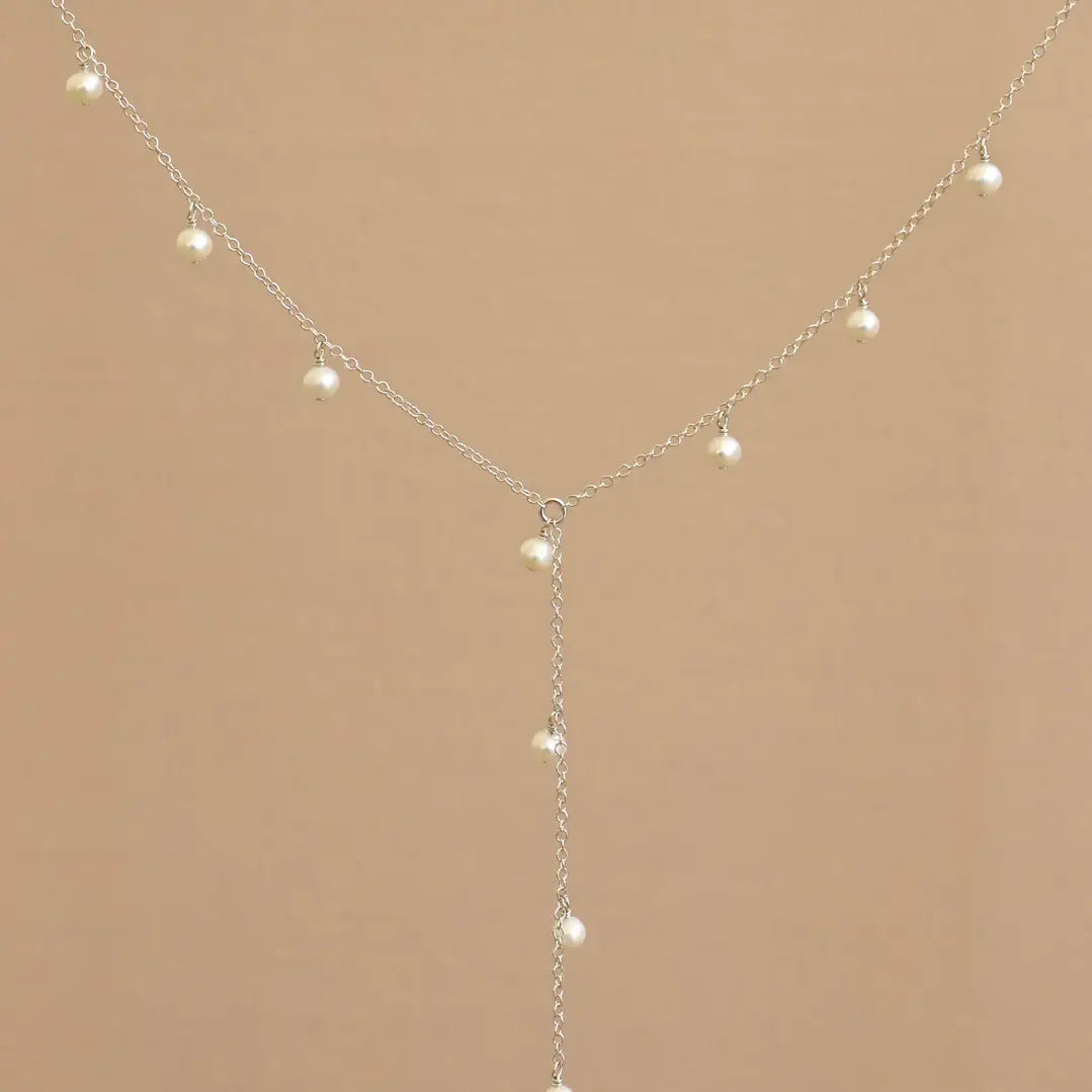 Elle Pearl Drop Lariat Necklace - Silver