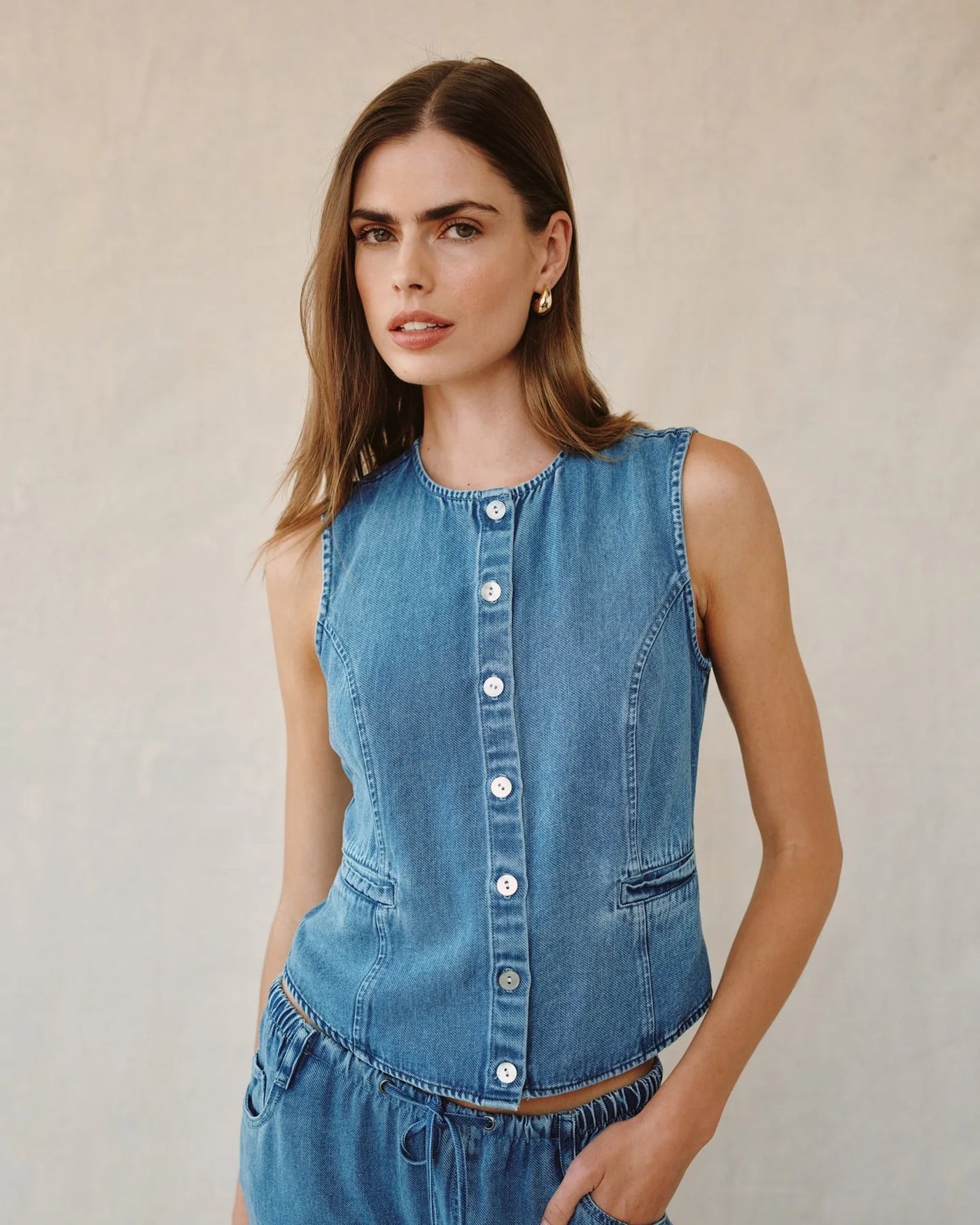 The High Neck Fitted Vest is a modern take on a structured staple, crafted for a clean, tailored look.