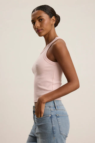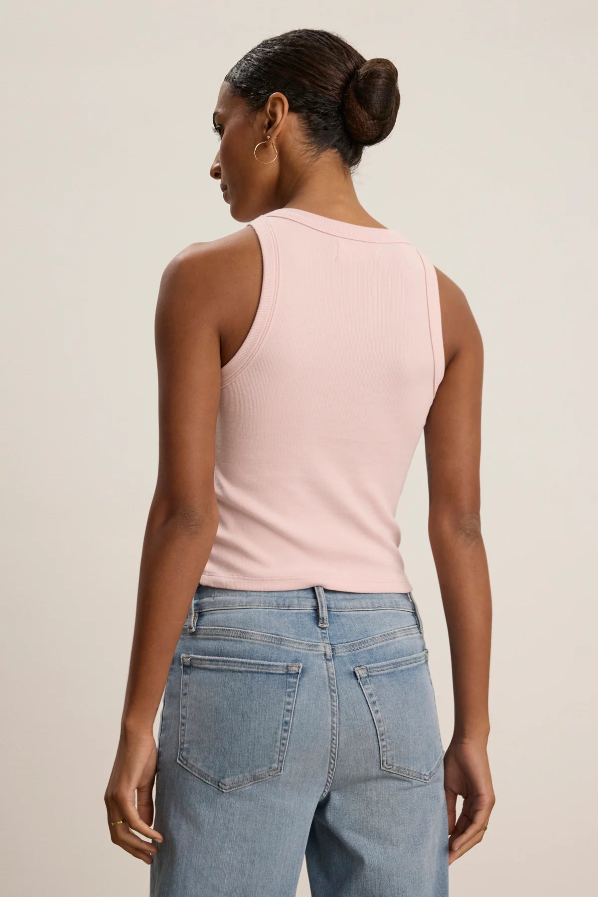 With a sleek cropped fit and classic crew neckline, this tank is a modern essential. Crafted from a soft rib mix with just the right amount of stretch, it offers a comfortable yet sculpted look. Simple and chic, it’s a versatile piece for any wardrobe.