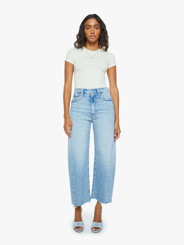 Truth's out. Super high-waisted jeans with a wide, curved leg, an ankle-length inseam and a frayed hem. Made from semi-rigid SUPERIOR denim, I Confess is a light blue with whiskering and fading at the knees.