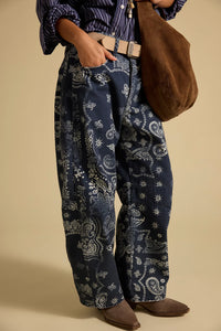 Good Luck Printed Barrel Jean - 25 / Navy Bandana